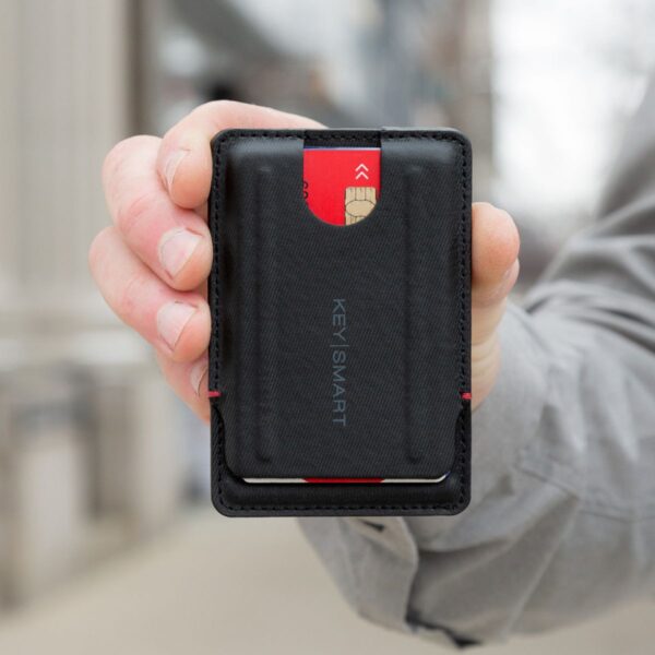 The Slim card wallet comfortably stores up to 6 cards and keeps them there with the locking barrier system. An integrated Tileâ„¢ Slim pocket ensures that your wallet doesn’t get too far without you. Travel lightly and confidently knowing that your money is safe and secure.