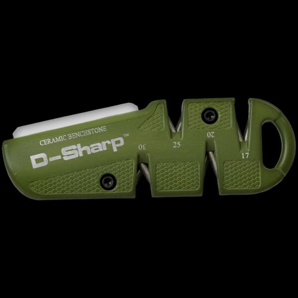 The all-new D-Sharp features four sharpening angles (17, 20, 25 and 30) in 600 grit diamond. It also has a fine 800 grit ceramic benchstone that can be used for polishing straight or serrated blades. Perfect as a Lansky System accessory, or as a stand-alone sharpening solution. FEATURES: 4 sharpening angles (17º, 20º, 25º, and 30º) Ceramic Benchstone for fine polishing and serrations 600 grit medium diamond pull-through slots 800 grit ceramic serrated mini benchstone Durable metal casing 100% compatible with all Lansky Controlled-Angle Systems & Turn Boxes