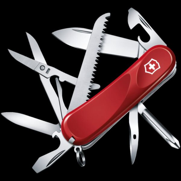 • Swiss made pocket knife with 15 functions and ergonomically designed scales.
